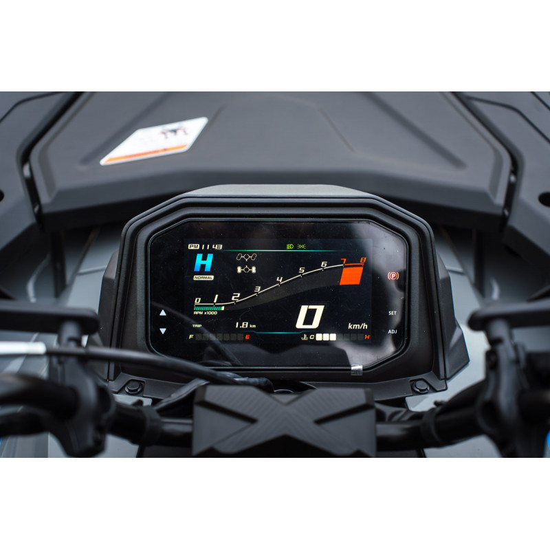 Modernne 7-tolline TFT displei vahetab automaatselt päeva- ja öörežiimide vahel vastavalt valgustugevusele. Kõik oluline info on selgelt ja arusaadavalt kujutatud: kiirus, pöörded, mootori temperatuur, kütuse tase. Displeil on ka käiguindikaator, mis kuvab hetke käiku ning ka hetkeline sõidurežiim.