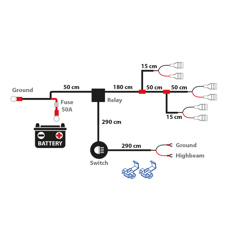 Lisatulede Heavy Duty juhtmekomplekt max 750W / 3 tulele