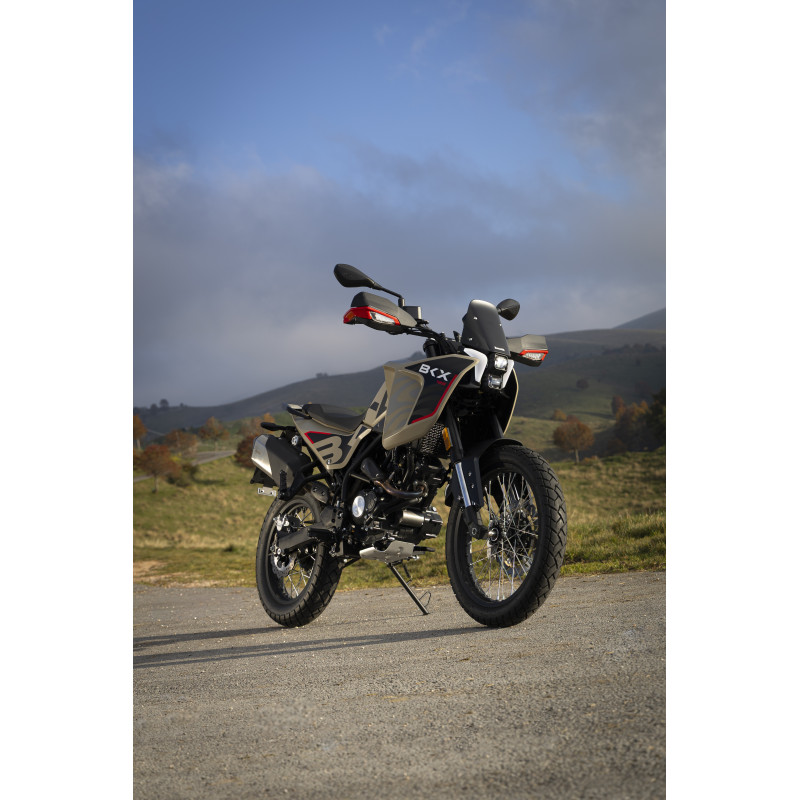 BKX 125 jõuallikaks on kaasaegne 125 cm³ Euro 5+ nõuetele vastav vedelikjahutusega ühesilindriline mootor, mis arendab 15 hj ja 12,1 Nm pöördemomenti ning vastab täielikult A1-kategooria juhiloa piirangutele. ABS-iga varustatud pidurisüsteem sisaldab 280 mm esipiduriketast radiaalse pidurisadulaga ning 240 mm tagumist ketast, tagades kontrolli ja ohutuse igas olukorras. Tänu mõõtmetele ja ergonoomikale, mis on kavandatud ka maastikusõitu silmas pidades, tagab BKX 125 suurepärase juhitavuse ja tugeva kontrollitunde.