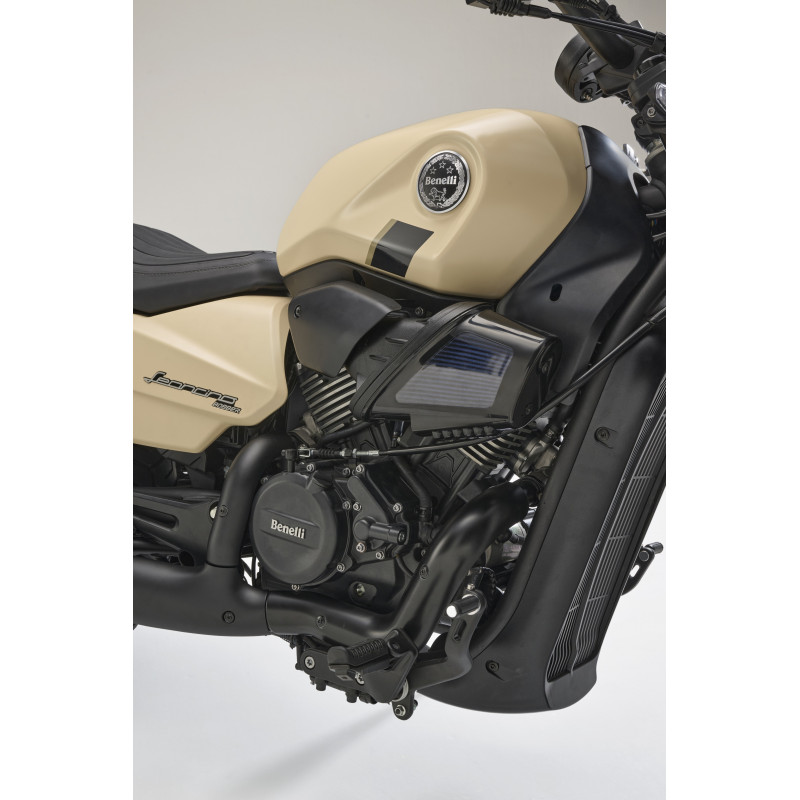 Euro 5+ nõuetele vastav 60° V-kaksikmootor on samuti Benelli jaoks täielik esmakordne lahendus ning paistab silma ka iseseisva disainielemendina. See väljendub detailides, nagu dekoratiivsed jahutusribid, mis rikastavad muidu vedelikjahutusega mootorit, ning läbipaistev õhufilter, mis tõmbab pilku ja kujuneb mudeli tugevaks identiteedimärgiks.