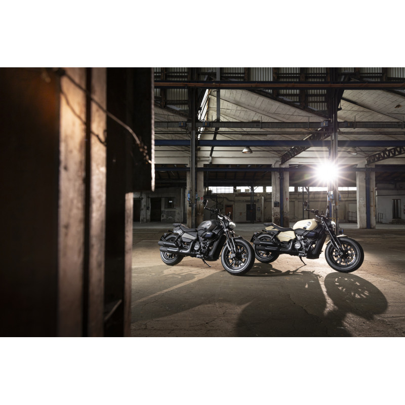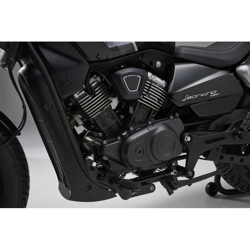 Mootor on vedelikjahutusega ning varustatud poolikute jahutusribidega silindritega, mis viitavad klassikalisele custom-stiilile. Rihmülekande kasutamine rõhutab veelgi selle seotust cruiser-maailmaga.