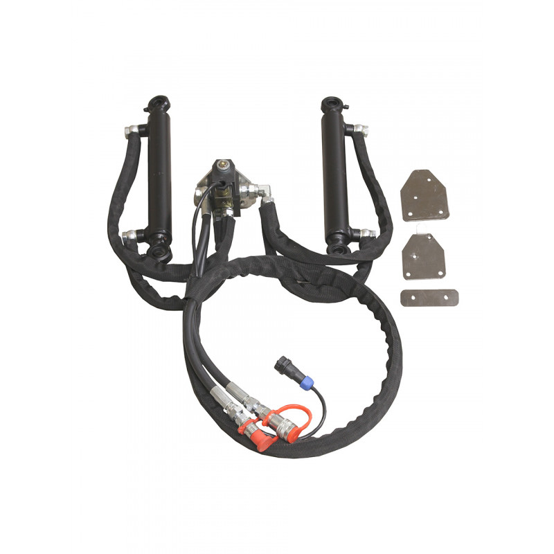 Hüdrauliliste silindrite komplekt voolikute ja solenoidklapiga, mis võimaldab Iron Baltic 180cm V-Saha mõlemaid pooli liigutada, säilitades samas võimaluse lisada ka kolmas silinder üles-alla liigutamiseks.